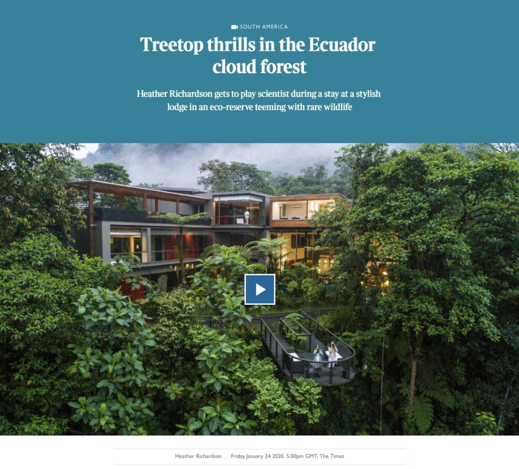 The Sunday Times Travel Treetop thrills in the Ecuador cloud forest The Sunday Times – 25th January 2020 (print and online)